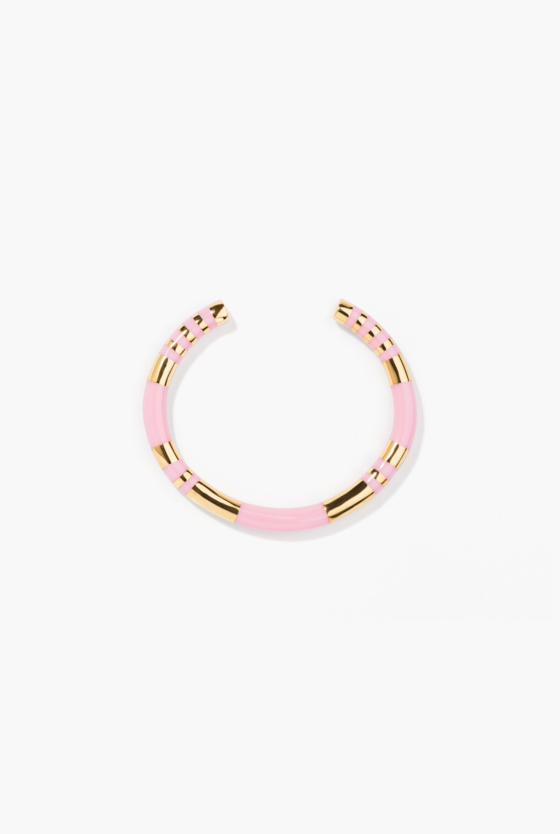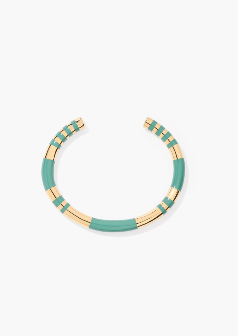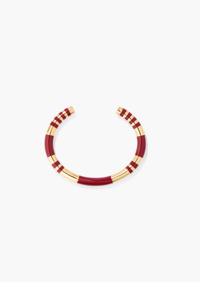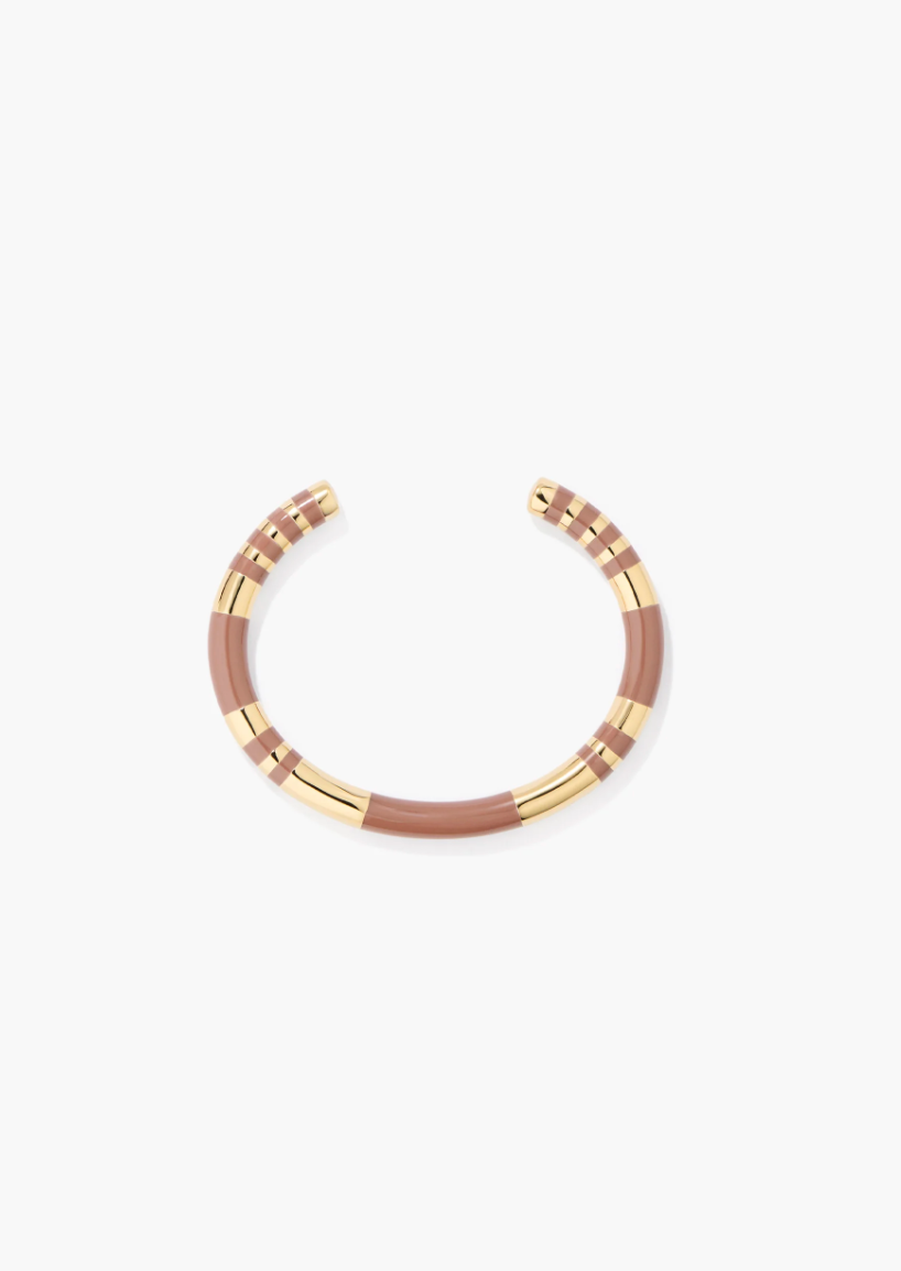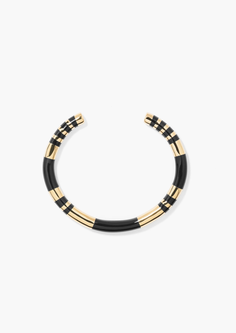 Jonc Positano à rayures ivoire en résine et doré à l'or jaune 750/1000.