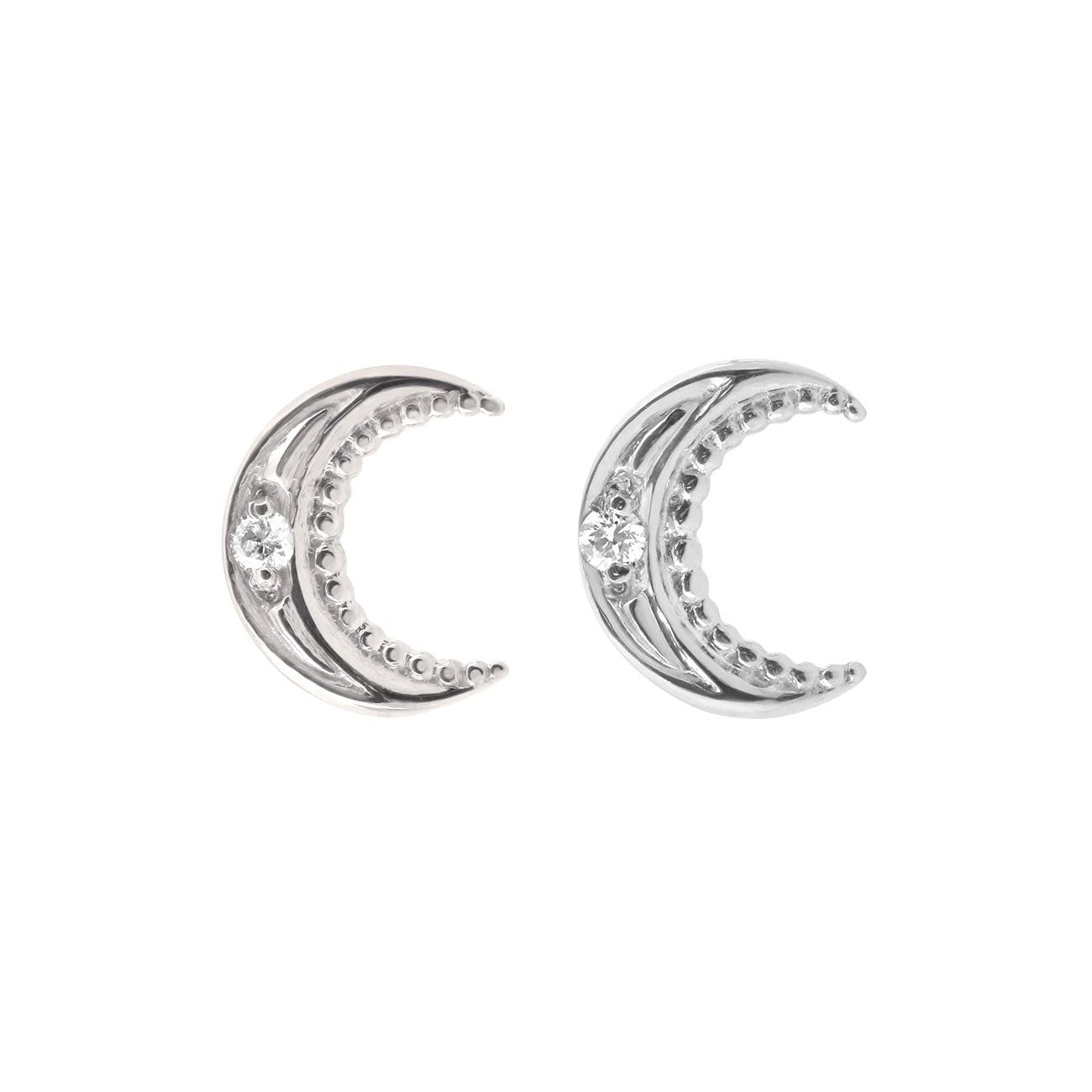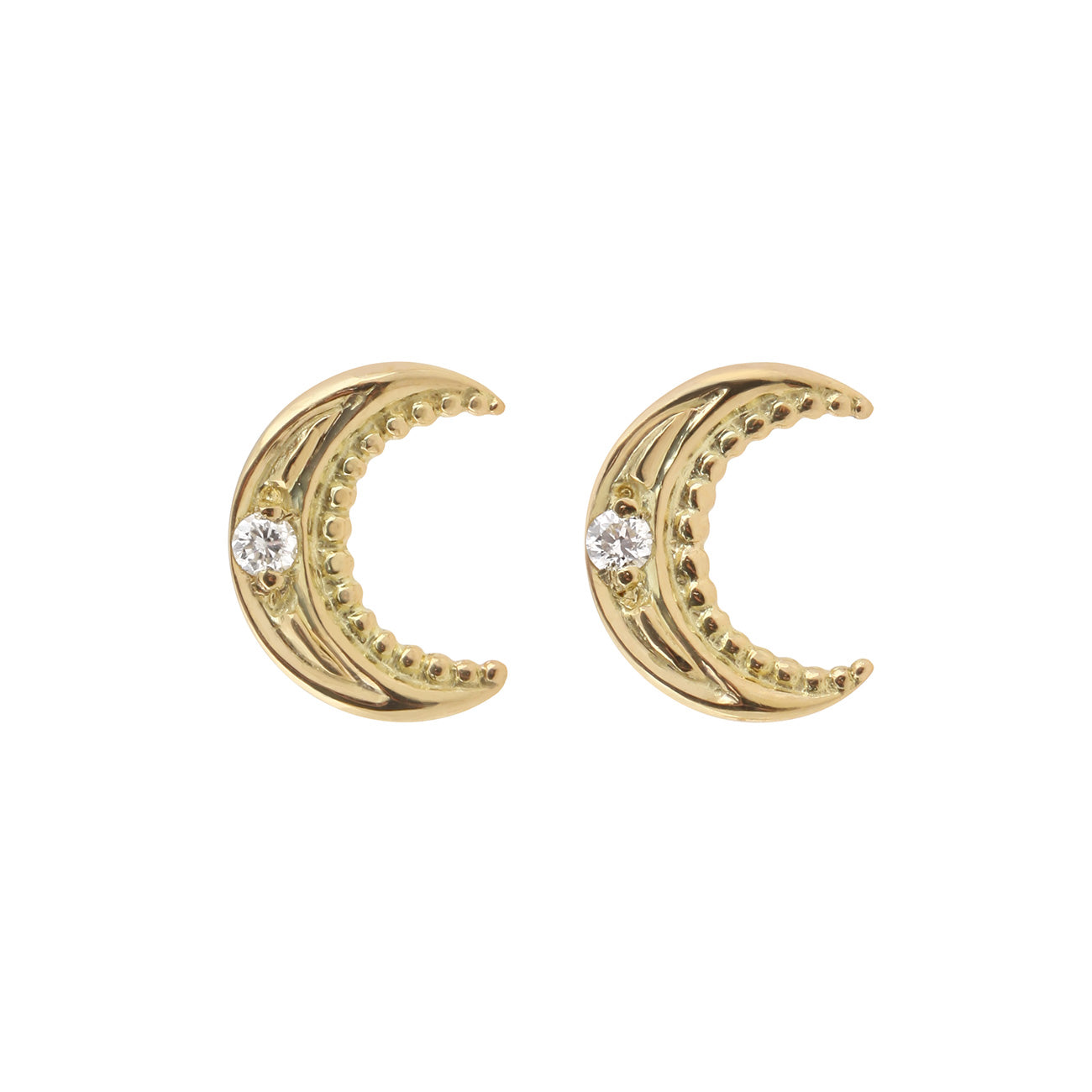 Boucles d'oreilles puces en forme de lunes en or 18k, ornées d'un diamant.